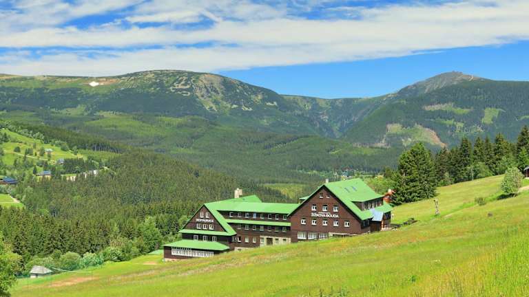 Das Horský hotel Žižkova bouda ist ein charmantes Hotel, das auf einem Hügel oberhalb von Pec pod Sněžkou liegt und einen atemberaubenden Blick auf das Riesengebirge bietet. Mit seiner Lage direkt an einer Skipiste und dem Nationalpark ist es ein idealer Ausgangspunkt für Outdoor-Aktivitäten. Das Hotel bietet komfortable Zimmer, ein Restaurant mit traditioneller tschechischer Küche und verschiedene Freizeiteinrichtungen wie einen Skiraum und ein Spielezimmer. Genießen Sie Ihren Aufenthalt in dieser malerischen Umgebung.