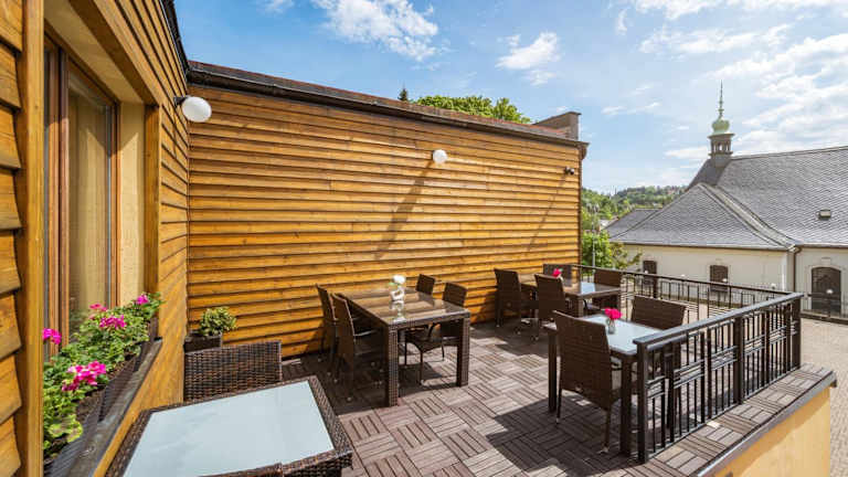 Im hoteleigenen Restaurant können Sie typisch tschechische Küche und Steaks genießen. Als Gast des Hotels erhalten Sie eine Ermäßigung auf Ihre Mahlzeiten. Im Sommer haben Sie auch die Möglichkeit, im Freien zu speisen und die frische Luft zu genießen. Morgens erwartet Sie ein reichhaltiges Frühstücksbuffet, um gestärkt in den Tag zu starten.