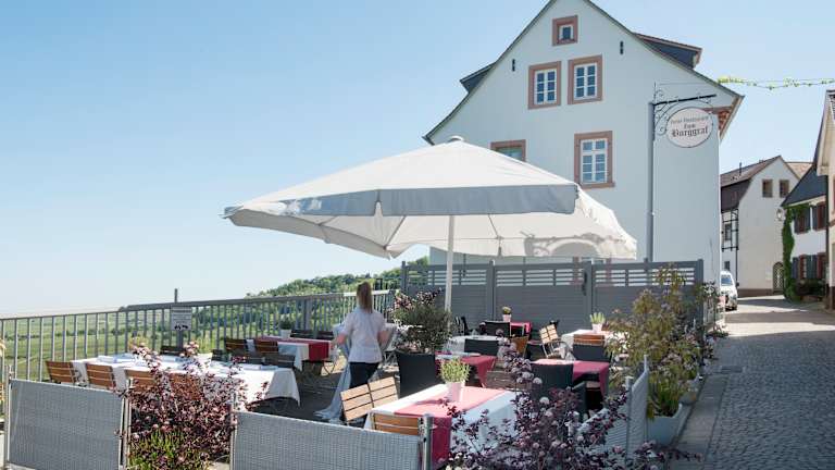 Unser Restaurant verwöhnt Sie mit moderner, saisonaler und regionaler Küche. Gerne sind wir für Sie auch bei festlichen Anlässen bis zu 50 Personen da. Wir verarbeiten nur die frischesten Produkte aus der pfälzer Region. Auf unserer Sonnenterrasse genießen Sie den wohl schönsten Blick der Pfalz. Schauen Sie bei uns vorbei und genießen Sie die kulinarischen Köstlichkeiten, vom Küchenchef persönlich mit Liebe zubereitet. Thomas Hahn kreiert für Sie ein köstliches Rumpsteak vom Argentinischen Angusrind nach Ihren persönlichen Wünschen, serviert mit mit regionalen und saisonalen Beilagen. Nutzen Sie unsere zahlreichen Arrangements mit Übernachtungen & Menüs inklusive Weinprobe!
