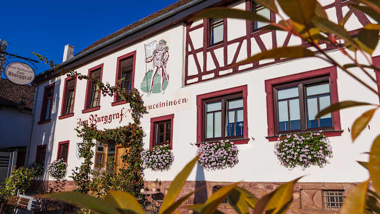Herzlich Willkommen im Hotel Restaurant Zum Burggraf! Erleben Sie raffiniertes Ambiente in alten Gemäuern mit drei Sterne Komfort, lassen Sie sich kulinarisch verwöhnen mit herrlichem Blick über die Rheinebene oder am gemütlichen offenen Kamin. Unsere 2016 renovierten Themenzimmer und unser Restaurant laden Sie zum Verweilen ein. Ob Touristen, Romantiker, Wanderer, Radfahrer, Weinliebhaber und auch Buisness- Reisende: alle finden die Erholung pur und ein Refugium für Menschen, die Individualität schätzen. Ihre Familie Hahn, Familientradition seit 1968