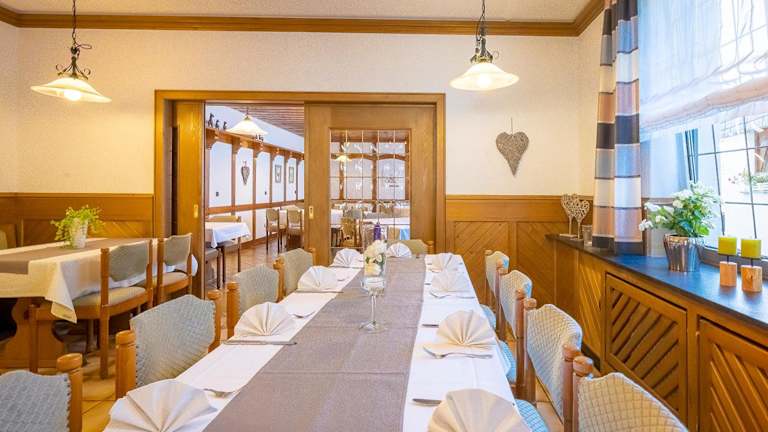 Das Restaurant im Hotel Zum Lindenbaum bietet die Auswahl zwischen einem à la carte Menü oder kontinentalem Frühstück.