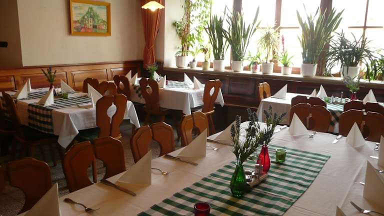 Im Restaurant des Hotels Zum Weißen Rössl können Sie sich auf eine Auswahl an Gerichten der mediterranen Küche freuen. Das Restaurant verfügt auch über einen Biergarten, in dem Sie die warmen Sommerabende genießen können. Morgens wird Ihnen ein köstliches Frühstücksbuffet angeboten, um gestärkt in den Tag zu starten.