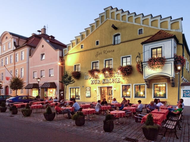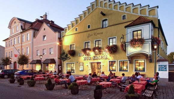 Das Hotel Zur Krone verfügt über eine Gaststube, in der traditionelle deutsche Gerichte serviert werden. Die Küche legt Wert auf frische, regionale Zutaten und bereitet die Speisen mit viel Liebe zum Detail zu. An schönen Tagen können Sie die köstlichen Gerichte und eine große Auswahl an Getränken auf der Terrasse genießen und dabei das bayerische Flair der Stadt erleben.