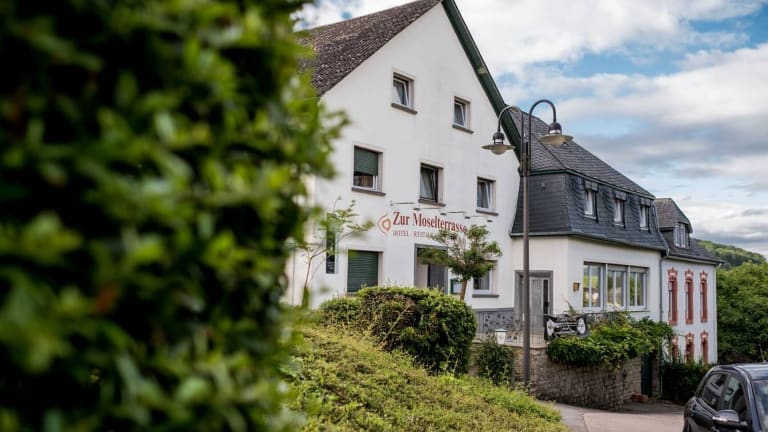 "Das Hotel ""Zur Moselterrasse"" in Palzem ist eine gemütliche Unterkunft mit einer Vielzahl von Annehmlichkeiten. Die Zimmer sind komfortabel eingerichtet und bieten alles, was man für einen angenehmen Aufenthalt benötigt. Genießen Sie das kontinentale Frühstück und entspannen Sie in der Gemeinschaftslounge oder auf der Terrasse. Die Umgebung bietet viele Möglichkeiten zum Wandern und Radfahren."