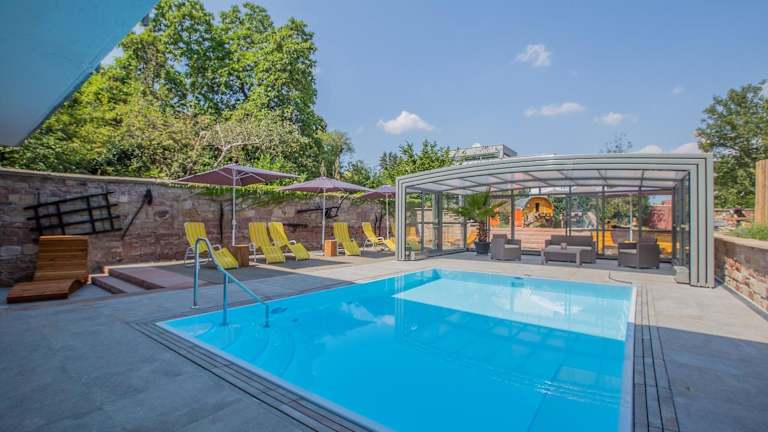 Das Hotel zur Pfalz in Kandel ist der ideale Ausgangspunkt, um die Region zu erkunden. Mit seinem traditionellen Stil, dem gemütlichen Biergarten und der entspannenden Sauna bietet das Hotel eine angenehme Atmosphäre für Ihren Aufenthalt. Genießen Sie das leckere Frühstück und erkunden Sie die umliegenden Städte und Sehenswürdigkeiten wie den Rhein und Karlsruhe.