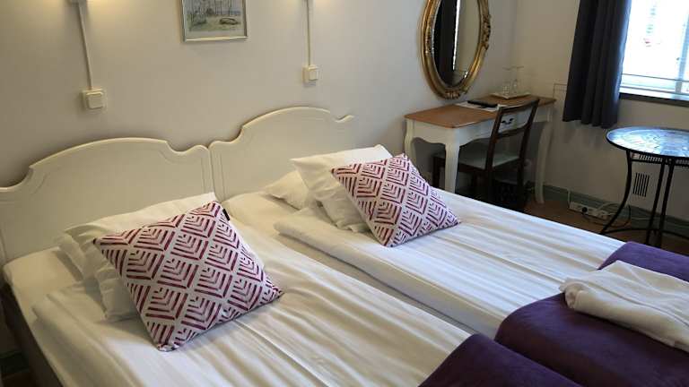 Das Hotel Hotell Turistgården i Simrishamn in Simrishamn ist ein charmantes, familiengeführtes Hotel, nur wenige Gehminuten vom Bahnhof entfernt. Mit seinem historischen Ambiente, einem schönen Rosengarten und kostenfreien Privatparkplätzen bietet es den perfekten Ausgangspunkt, um Simrishamn und seine Umgebung zu erkunden. Die Zimmer sind komfortabel eingerichtet und verfügen über moderne Annehmlichkeiten wie luxuriöse Betten und Fernseher. Das Hotel bietet auch Gemeinschaftseinrichtungen wie Mikrowellen und ein Bügeleisen/-brett sowie die Möglichkeit, einen bequemen Bademantel auszuleihen. Die Lage des Hotels in der Nähe der mittelalterlichen Kirche Sankt Nicolai, des Rathauses von Simrishamn und der Hanöbucht macht es zu einem idealen Ort für Erkundungstouren.