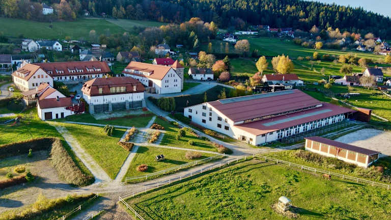 Das Hotelový a jezdecký areál Dvůr Krutěnice ist ein charmantes Hotel auf einer Pferdefarm, das mit einem eigenen Restaurant und kostenfreiem WLAN überzeugt. Hier können Sie Reitaktivitäten genießen und im Wellnesscenter entspannen. Die Zimmer sind gemütlich eingerichtet und einige bieten ein eigenes Bad. Es gibt auch Gemeinschaftszimmer mit einer Gemeinschaftsküche und Lounge. Das Restaurant serviert ein köstliches Frühstück sowie tschechische Spezialitäten. Die Unterkunft bietet eine Vielzahl von Aktivitäten wie Minigolf, Schwimmen im Außenpool, Tennis und Sportfischen. Entspannen Sie auch in der Sauna oder bei einer Massage. Der Garten mit Terrasse und Kinderspielplatz lädt zum Verweilen ein. In der Umgebung finden Sie Rad- und Wanderwege sowie Sehenswürdigkeiten wie den Aquapark Horaždovice, den Mystic Skatepark Sušice und die Burg Rabí. Kostenlose Parkplätze stehen zur Verfügung.