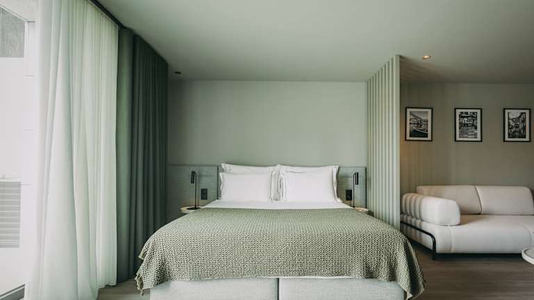 Die klimatisierten Zimmer sind ausgestattet mit einem Schreibtisch, einer Kaffeemaschine, einem Kühlschrank, einem Geschirrspüler, einem Safe, einem Flachbild-TV und einem eigenen Badezimmer mit Dusche. Die Zimmer sind mit Bettwäsche und Handtüchern ausgestattet; einige Zimmer verfügen über einen Balkon und andere bieten Blick auf die Stadt.