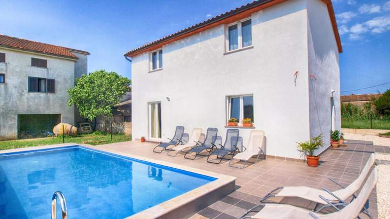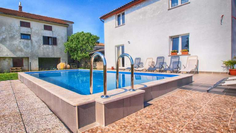 Das House Andrej 1372 ist ein charmantes Ferienhaus mit einem saisonalen Außenpool und einer Terrasse. Es bietet eine ideale Lage, nur etwa 6,9 km vom beeindruckenden Amphitheater Pula entfernt. Mit einem schönen Garten, Grillmöglichkeiten und kostenfreiem WLAN ist dieses Ferienhaus perfekt für einen erholsamen Aufenthalt. Die Unterkunft verfügt über 4 komfortable Schlafzimmer, einen gemütlichen Wohnbereich und eine gut ausgestattete Küche. Handtücher und Bettwäsche werden gestellt, um Ihren Aufenthalt so angenehm wie möglich zu gestalten. Erkunden Sie die Umgebung und besuchen Sie Sehenswürdigkeiten wie die Kathedrale St. Eufemia in Rovinj oder die archäologische Stätte Vižula, die beide in der Nähe liegen. Der Flughafen Pula ist nur 8 km entfernt und bietet eine bequeme Anreise.
