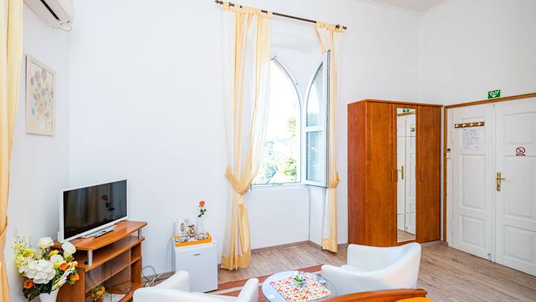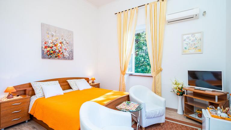 Die Zimmer im House Boninovo sind hell und geräumig und bieten eine komfortable Unterkunft für Ihren Aufenthalt. Jedes Zimmer verfügt über eine Klimaanlage, kostenloses WLAN und Sat-TV. Ein Sitzbereich mit Sesseln und Couchtisch lädt zum Entspannen ein. Das Badezimmer ist mit einem Haartrockner und einer Duschkabine ausgestattet.
