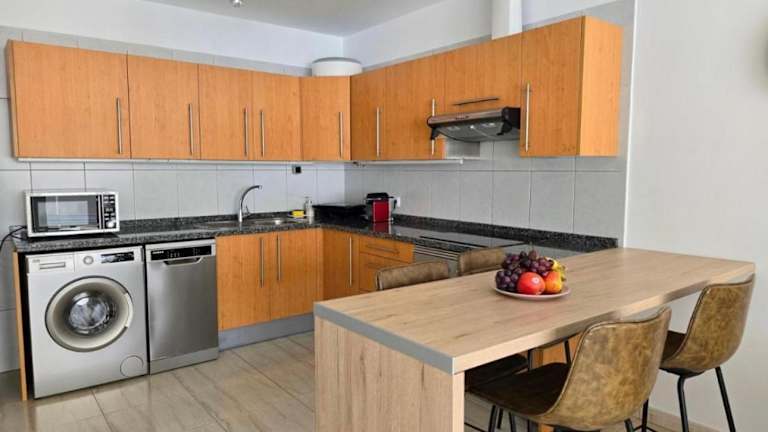 Die Ferienwohnung verfügt über ein Schlafzimmer und eine voll ausgestattete Küche. Die Klimaanlage sorgt für einen angenehmen Aufenthalt. Zur Unterhaltung steht ein Flachbild-TV zur Verfügung.