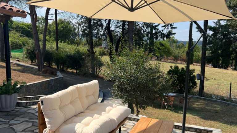 Das klimatisierte Apartment im House in the Woods verfügt über 2 Schlafzimmer, ein geräumiges Wohnzimmer und eine voll ausgestattete Küche mit Kühlschrank und Kaffeemaschine. Das Badezimmer ist mit einer Dusche und einem Haartrockner ausgestattet. Handtücher und Bettwäsche werden gestellt, um den Gästen den Aufenthalt so angenehm wie möglich zu gestalten. Die Terrasse und der Balkon bieten einen wunderschönen Blick auf die Umgebung.