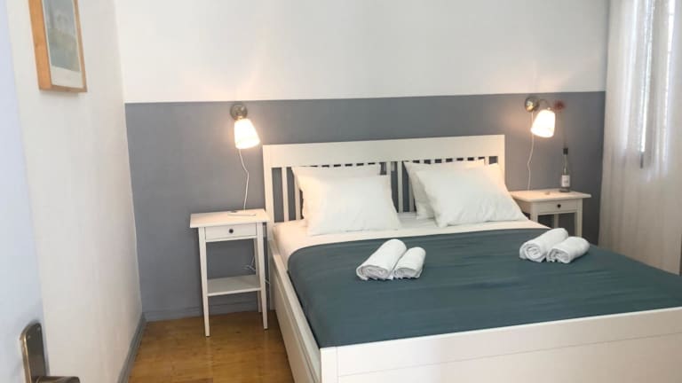 Das Ferienhaus umfasst 2 Schlafzimmer, eine Küche mit Kühlschrank und Ofen, einen Flachbild-TV, einen Sitzbereich und 1 Badezimmer mit einem Bidet. Handtücher und Bettwäsche werden bereitgestellt.