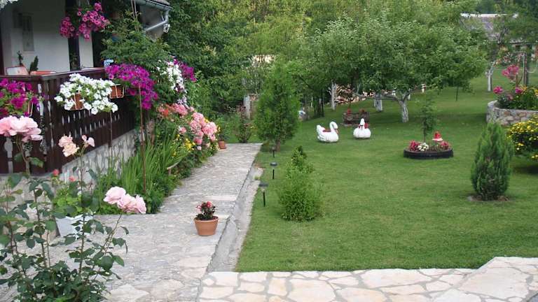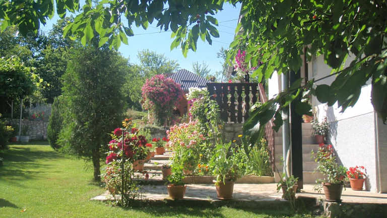 Der große und gepflegte Garten des House Nina lädt zum Entspannen ein. Hier finden Sie viele bunte Blumen und Sitzgelegenheiten im Freien, um die frische Luft und die ruhige Atmosphäre zu genießen. Die Umgebung bietet auch zahlreiche Möglichkeiten für Outdoor-Aktivitäten wie Wandern, Radfahren und Bootsfahrten auf den Seen.