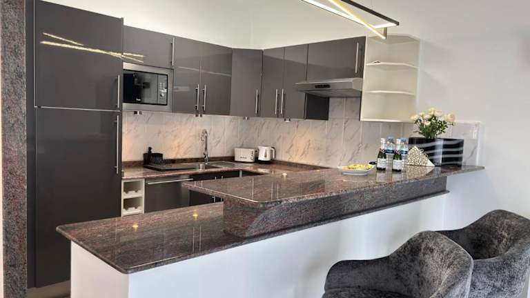 In der Unterkunft befindet sich ein Café. Den Gästen steht eine voll ausgestattete Küche zur Verfügung, die unter anderem mit einem Kühlschrank und einer Kaffeemaschine ausgestattet ist.