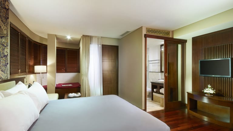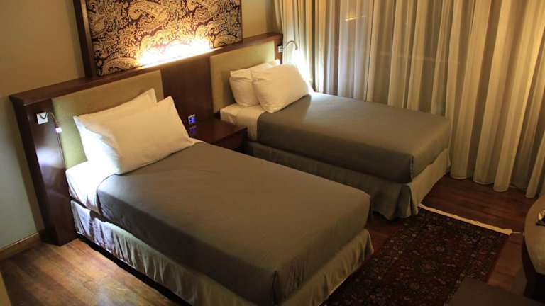 Die Zimmer sind klimatisiert, verfügen über Holzböden und bieten Annehmlichkeiten wie einen Flachbild-Sat-TV, einen Wasserkocher sowie eine kostenfrei gefüllte Minibar. Standardmäßig sind ein Balkon oder eine Terrasse, ein Doppelbett oder Queensize-Bett, ein Kühlschrank sowie Kaffee-/Teezubereiter vorhanden. Die Badezimmer sind mit einer Dusche, Hausschuhe und einem Haartrockner ausgestattet. Zusätzliche Annehmlichkeiten umfassen ein Bügelset, einen Steckdosenadapter, einen Wecker und kostenloses Wi-Fi. Es stehen Familien- und Nichtraucherzimmer zur Verfügung.