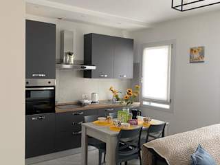 In jeder Wohneinheit ist eine voll ausgestattete Küche vorhanden, die einen Kühlschrank, einen Geschirrspüler, einen Ofen, eine Kaffeemaschine und einen Wasserkocher umfasst.