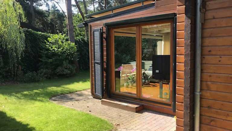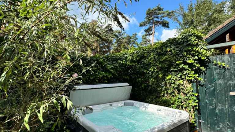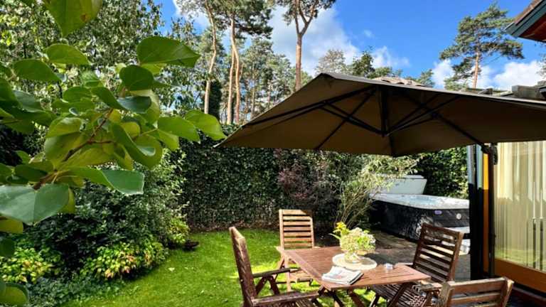 Das Houten chalet/bungalow in het bos, sauna, jacuzzi ist eine private Unterkunft mit einem Balkon und bietet verschiedene Annehmlichkeiten wie einen Garten, Grillmöglichkeiten, kostenloses WLAN und einen Privatparkplatz. Es handelt sich um ein Nichtraucherobjekt mit speziellen Richtlinien für Reinigung und Sicherheit.
