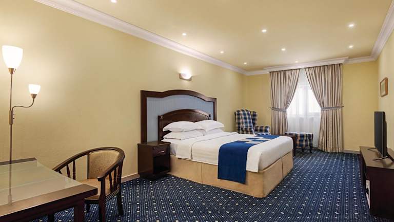 Das Howard Johnson Dammam Hotel befindet sich an der Corniche Road in Dammam, nur wenige Schritte vom Strand entfernt. In unmittelbarer Nähe befinden sich verschiedene Restaurants, darunter auch Fischrestaurants. Die Entfernung zu den Einkaufszentren Dareen und Marina Mall beträgt lediglich 3 km, während der Flughafen Dammam in 20 Minuten mit dem Auto erreichbar ist.