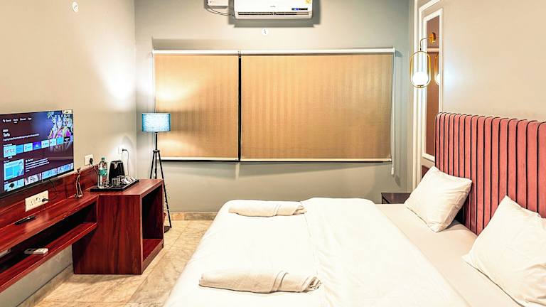 Das Hoztel Jaipur ist eine haustierfreundliche Unterkunft in Jaipur, die sich perfekt für Reisende eignet, die eine zentrale Lage und kostenfreies WLAN suchen. Mit kostenfreien Privatparkplätzen und einer 24-Stunden-Rezeption bietet das Hotel allen Gästen einen komfortablen Aufenthalt. Entdecken Sie die Sehenswürdigkeiten von Jaipur, wie den Fort Palace von Fortargarh und den Stadtpalast, die nur eine kurze Fahrt vom Hotel entfernt sind. Der internationale Flughafen Jaipur ist ebenfalls gut erreichbar.