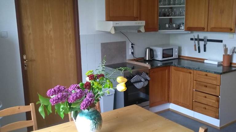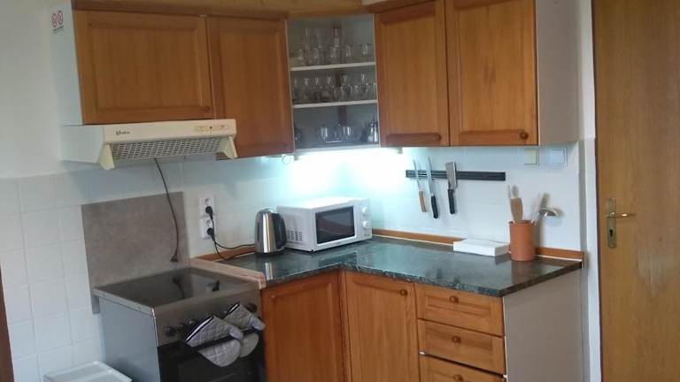 Die Ferienwohnung verfügt über 1 Schlafzimmer, eine Küche, die mit einem Kühlschrank und einem Ofen ausgestattet ist, sowie ein Badezimmer mit einer Dusche. Handtücher und Bettwäsche sind ebenfalls vorhanden.