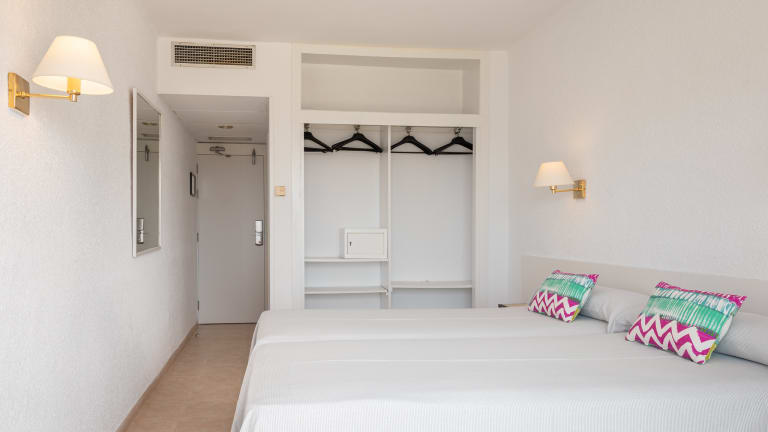 Entspannen Sie sich nach einem langen Tag voller Erlebnisse in einem ruhigen, komfortablen Raum in unseren Zimmern und Einrichtungen, die ein Höchstmaß an Komfort bieten. Dieses Standardzimmer von 19 m2 ist eine flexible Option für einen entspannten, komfortablen Aufenthalt in Calella. Mit der Möglichkeit von Zustellbetten für Kinder oder Erwachsene für bis zu 4 Personen, bietet das Zimmer einen Blick auf die natürliche mediterrane Landschaft und eine gemütliche Einrichtung.