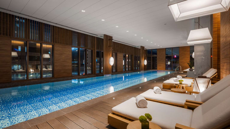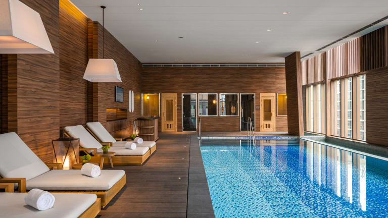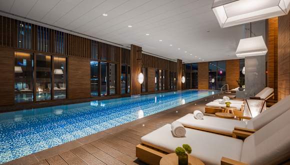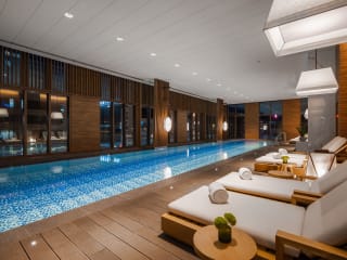 Die Unterkunft bietet ein Fitnesscenter, einen Innenpool und eine Sauna für die sportliche Betätigung und Entspannung der Gäste.