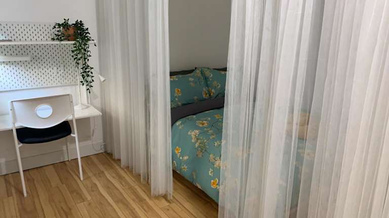 Das Zimmer ist mit Handtüchern und Bettwäsche ausgestattet. Es bietet zudem einen eigenen Eingang und ein Badezimmer.