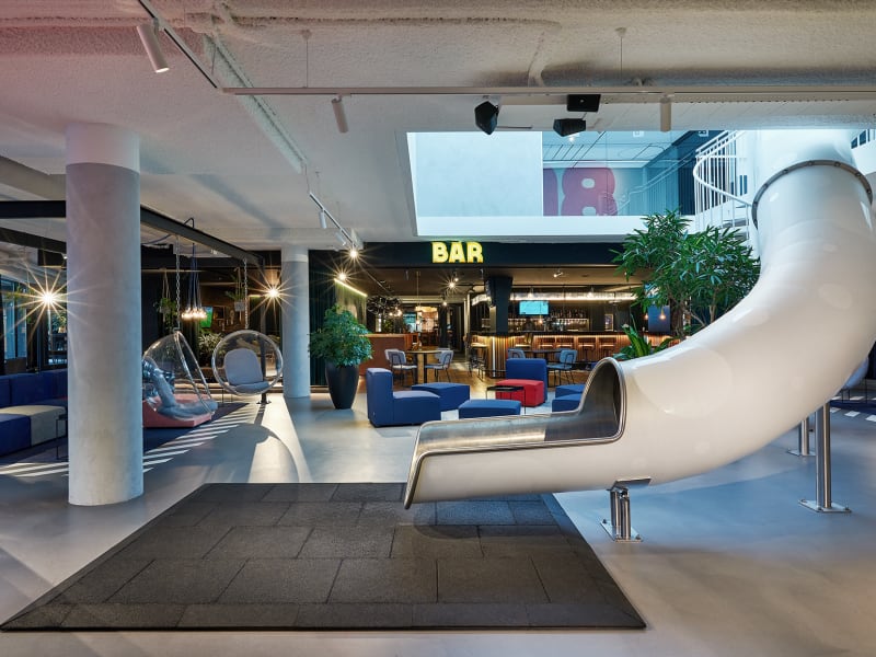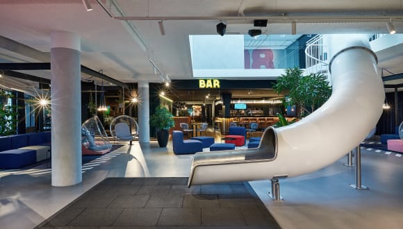 Übernachten Sie sich fit HUP ist das sportlichste Hotel der Niederlande. Und das schönste. Wir sind die richtige Adresse für Familien mit energiegeladenen Kindern. Für diejenigen, die nicht gut stillsitzen können, sich aber dennoch entspannen wollen. Denn auch Entspannen ist ein Sport. Wollen Sie schwitzen? Das können Sie, wenn es nach uns geht, ebenso so gut in der Sauna tun wie auf dem Squash-Court. Sie werden in jedem Fall mit neuer Energie zurückkommen. Toben Sie sich aus Bei HUP können Sie sich mal so richtig austoben. Können Sie sich vorstellen, wie groß 10.000 m2 sind? Legen Sie in Gedanken zwei Fußballfelder nebeneinander. Dann bekommen Sie eine Idee davon, wie viel Platz HUP für Entspannung und Anspannung bietet. Rennen Sie durch die Gänge, springen Sie auf Ihr Bett und rasen Sie auf einer Rutschbahn nach unten. Fordern Sie sich gegenseitig heraus - im Schlafzimmer oder auf der Bowlingbahn. Und lassen Sie den Tag mit einem leckeren Essen bei HUP EET oder gemütlich bei einem Glas Wein an der Bar ausklingen. Mal sehen, wer am nächsten Morgen als erstes beim Frühstück ist. HUP, auf geht's. Wollen Sie bei uns übernachten? - Übernachten Sie sich fit! So komplett ist Ihr Aufenthalt bei HUP: Ihr Frühstück ist inklusive. You're welcome! - Sport im Fitnessraum, bei Gruppenkursen oder auf dem Squash-Court - Entspannen in unserem Spa mit Schwimmbad, Saunen, Dampfbad und mehr - Toben in unserem PLAY-Bereich mit Minigolf, einer interaktiven Fußballwand und Tischtennis - Klettern, kriechen, gleiten in Monkey Town - Filme in unserem eigenen Kino ansehen - Kostenlose Kinderbetreuung für die (Aller-)Kleinsten