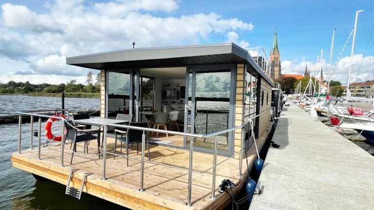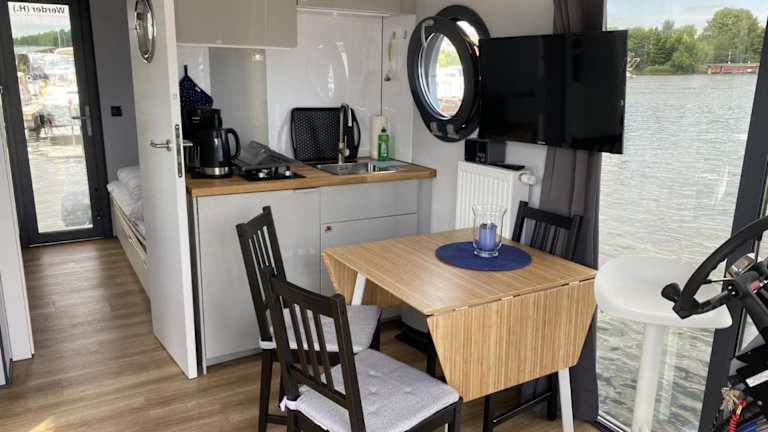 Husbåt ist eine Unterkunft mit Meerblick, die sich in Form eines Bootes präsentiert. Die klimatisierte Unterkunft bietet den Gästen einen Privatparkplatz und Zugang zu kostenlosem WLAN.
