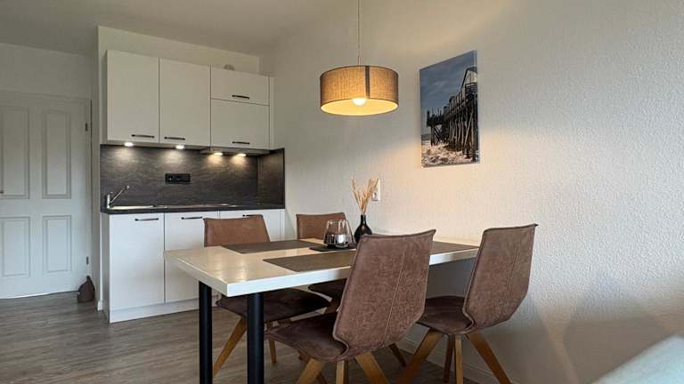 Die Ferienwohnung bietet zwei Schlafzimmer, ein Wohnzimmer sowie eine gut ausgestattete Küche mit Kühlschrank und Geschirrspüler. Zudem ist ein Badezimmer mit Dusche vorhanden. Für zusätzlichen Komfort können Handtücher und Bettwäsche gegen Gebühr bereitgestellt werden. Die Wohnung ist allergikerfreundlich und umfasst Nichtraucherzimmer.