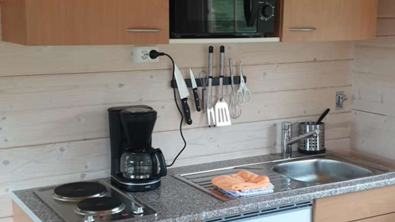 Das Ferienhaus verfügt über ein Schlafzimmer, ein Wohnzimmer und eine komplett ausgestattete Küche mit Kühlschrank und Kaffeemaschine. Zu den sanitären Einrichtungen gehört ein Badezimmer mit Dusche und Whirlpool. Handtücher und Bettwäsche sind ebenfalls vorhanden.