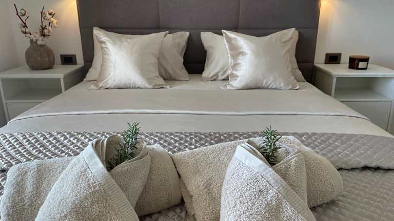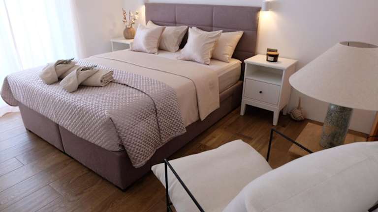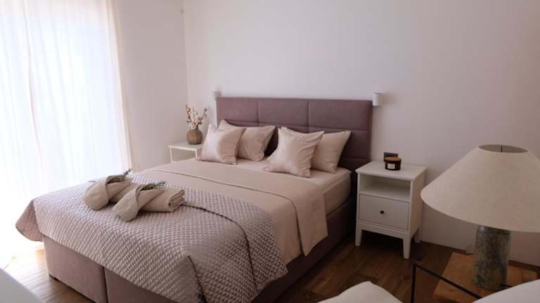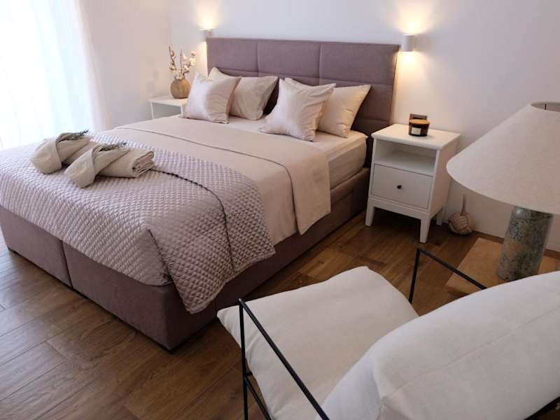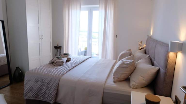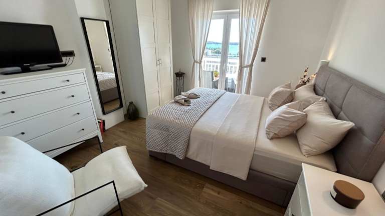 Die Zimmer der Ferienwohnung bieten kostenfreies WLAN, Klimaanlage und einen Balkon mit Meerblick. Sie sind ausgestattet mit einem Satelliten-Flachbild-TV sowie notwendigen Handtüchern und Bettwäsche. Zudem stehen ein Garten und eine Terrasse zur Verfügung. Den Gästen werden schallisolierte Zimmer sowie Heizung geboten.