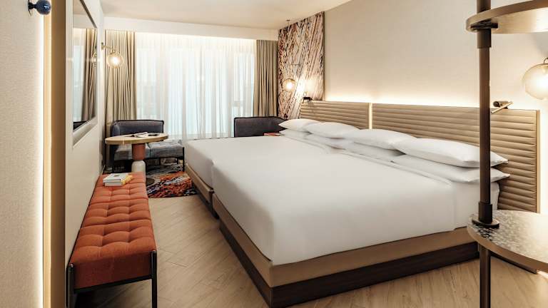 Die klimatisierten Zimmer sind ausgestattet mit einem Schreibtisch, einer Kaffeemaschine, einem Kühlschrank, einer Minibar, einem Safe, einem Flachbild-TV und einem eigenen Badezimmer mit Dusche. Bettwäsche und Handtücher werden ebenfalls bereitgestellt.