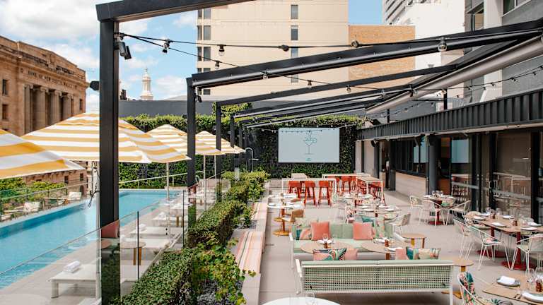 Das Sportangebot im Hyatt Regency Brisbane umfasst einen 24-Stunden-Fitnessraum, sowie Innen- und Außenpools, die sich für Aquatraining und Erholung eignen. Eine Sonnenterrasse mit Liegen und Schirmen ist ebenfalls vorhanden, sowie eine Poolbar, die erfrischende Getränke anbietet.