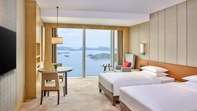 Die Zimmer im Hyatt Regency Shenzhen Yantian sind komfortabel und gut ausgestattet. Jedes Zimmer verfügt über einen Schreibtisch, einen TV und ein eigenes Bad. Eine Klimaanlage sorgt für angenehme Temperaturen und ein Kleiderschrank bietet ausreichend Stauraum.