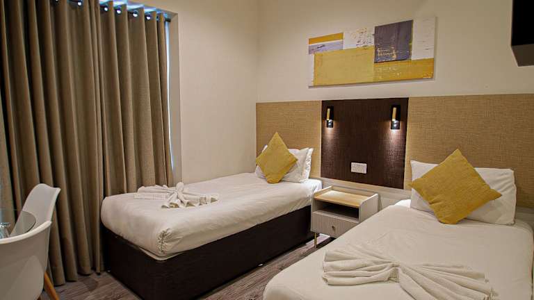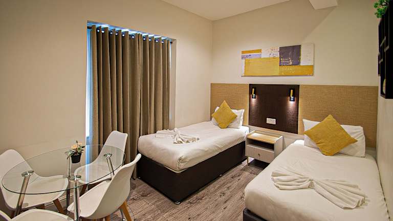 Die Hyde Park Superior Apartments bieten eine komfortable Unterkunft mit gut ausgestatteten Zimmern. Sie verfügen über ein Doppelbett oder ein Sofabett. Optional können auch separate Schlafzimmer gebucht werden. Zur Ausstattung gehört eine Kochnische mit Herd, Mikrowelle und Tee-/Kaffeemaschine. Die Zimmer sind mit Telefon, Sat-TV und WLAN ausgestattet.