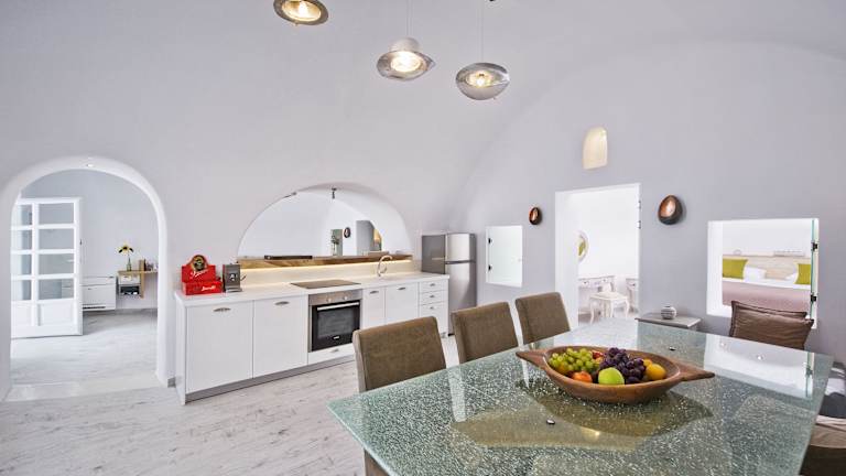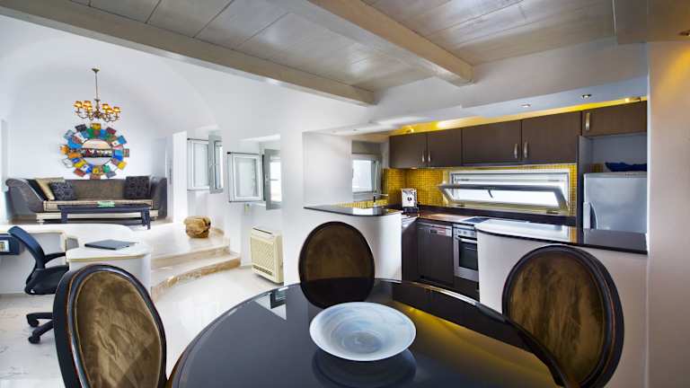 Die modern dekorierten Unterkünfte im Hyperion Oia Suites verfügen über ein Wohnzimmer, ein Schlafzimmer, eine voll ausgestattete Küche und ein Badezimmer mit Dusche. Die Villa bietet zusätzlich ein zweites Schlafzimmer mit einem Doppelbett und ein weiteres Badezimmer mit Dusche. Zu den weiteren Annehmlichkeiten gehören ein Flachbild-Sat-TV, Klimaanlage, Schränke, ein Esstisch, ein Sofa, ein Safe, ein Kühlschrank und ein Balkon oder eine Terrasse mit Meerblick. Genießen Sie auch Ihren eigenen beheizten Außenpool oder entspannen Sie im großen Whirlpool.