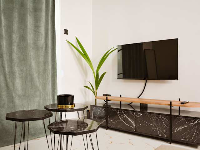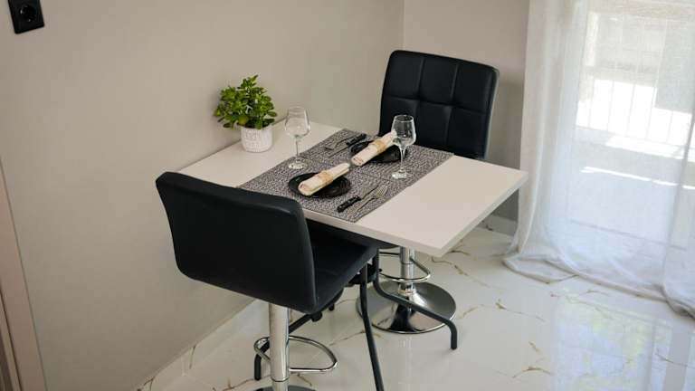 Die Ferienwohnung umfasst ein Schlafzimmer, eine Küche mit Kühlschrank und Ofen, einen Flachbild-TV sowie einen Sitzbereich. Ein Badezimmer mit Dusche ist ebenfalls vorhanden, und es werden Handtücher sowie Bettwäsche zur Verfügung gestellt.