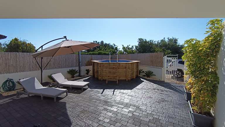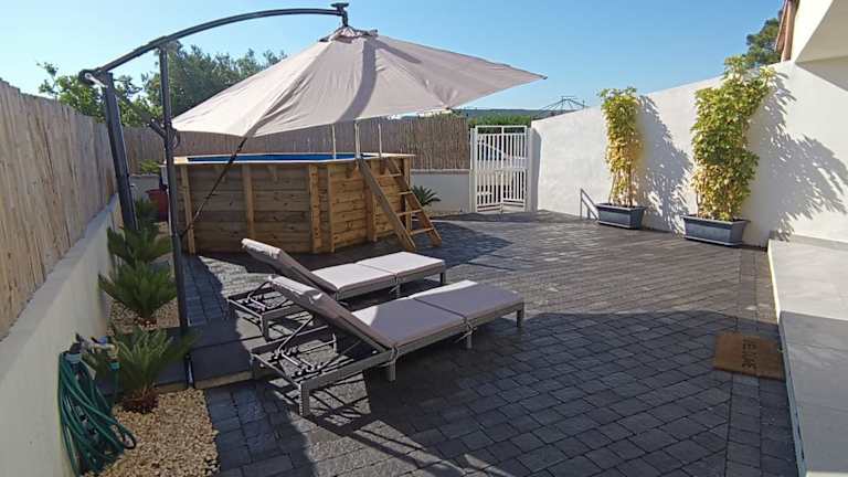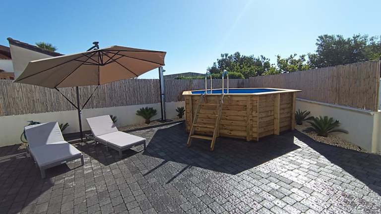 Die Unterkunft bietet ein Ferienhaus mit Klimaanlage, das aus zwei Schlafzimmern, einem Wohnzimmer und einer voll ausgestatteten Küche mit Kühlschrank und Kaffeemaschine besteht. Zudem sind ein Badezimmer mit Bidet und Dusche, ein Flachbild-TV und ein Blu-ray-Player vorhanden.