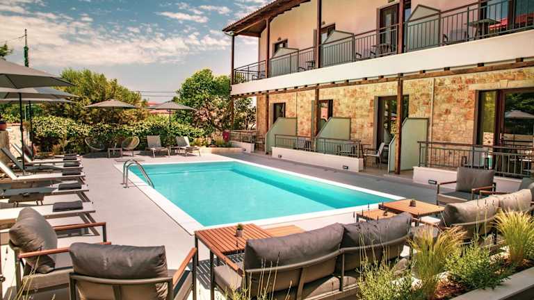 Die IADES suites zeichnen sich durch einen Pool, einen Garten sowie eine Bar aus. Zudem steht kostenfreies WLAN zur Verfügung. Die Unterkunft bietet einen angenehmen Aufenthalt mit verschiedenen Sitzbereichen und einem Flachbild-TV in den Zimmern.