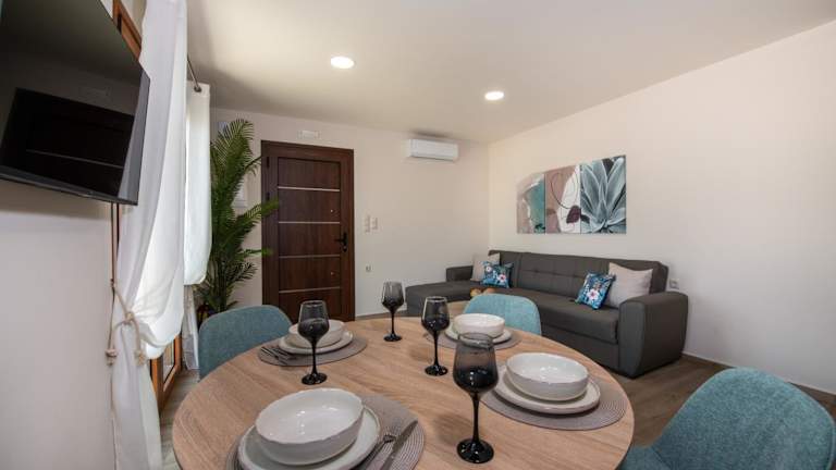 Iasmos ist eine Ferienunterkunft mit Terrasse und Blick auf das Meer. Die klimatisierte Wohnung bietet komfortable und moderne Annehmlichkeiten und ist auf Selbstverpflegung ausgelegt. Eine private Parkmöglichkeit steht den Gästen zur Verfügung und kostenloses WLAN wird ebenfalls angeboten.
