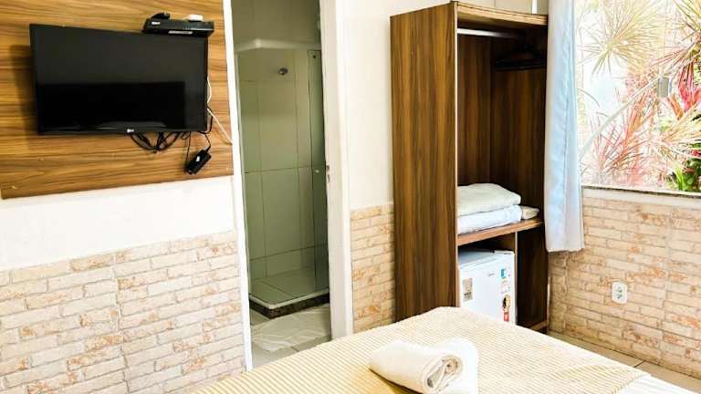 Alle Zimmer in der IBELLO BEACH Pousada sind mit einem Kleiderschrank, einem Flachbild-TV, einem eigenen Badezimmer sowie Bettwäsche und Handtüchern ausgestattet. Zusätzlich steht in jedem Zimmer eine Minibar zur Verfügung. Es sind Nichtraucher- sowie Familienzimmer verfügbar.
