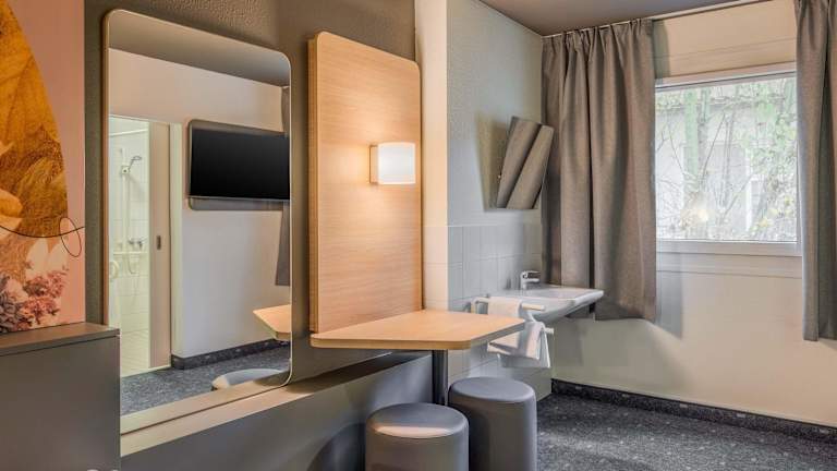 Die Zimmer im ibis Budget Ingolstadt Lenting bieten Ihnen modernen Komfort und sind mit einem Flachbild-TV, einer Dusche auf dem Zimmer und einem separaten WC ausgestattet. Die Einrichtung ist funktional und bietet Ihnen alles, was Sie für einen angenehmen Aufenthalt benötigen. Das kostenfreie WLAN ermöglicht es Ihnen, mit Ihren Lieben in Verbindung zu bleiben oder Ihre Reisepläne zu organisieren.