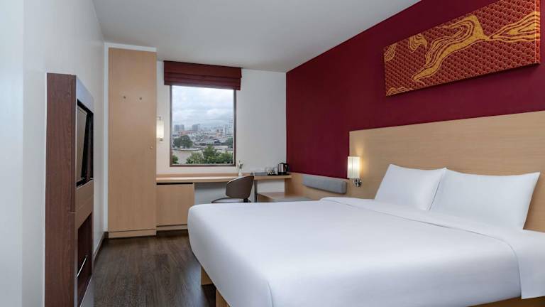 Das Ibis Hotel Bangkok Riverside befindet sich im Herzen Bangkoks direkt am Ufer des Menam Chao Phraya Flusses. Die Lage ist zentral und ermöglicht einen bequemen Zugang zu Sehenswürdigkeiten und Einkaufszentren. Zur Skytrain Station 'Krung Than Buri' besteht ein Shuttle-Service gegen Gebühr. Der Flughafen Suvarnabhumi International Airport liegt etwa 38 km entfernt, die Transferzeit beträgt ca. 30 Minuten.