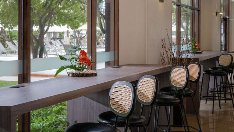 Es wird eine Vielzahl an Verpflegungsangeboten geboten, darunter Frühstück, Halbpension und Vollpension. Das Hauptrestaurant 'Taste' serviert internationale und thailändische Küche. Frühstück wird täglich in Form eines Buffets angeboten, während Mittag- und Abendessen Menüwahl umfassen. Die Lobbybar bietet Getränke und leichte Snacks. Für Kinder gibt es einen Kinderspielplatz.