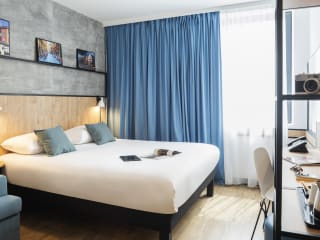 Sie werden gut schlafen in einem unserer 123 Zimmer, die 2022 komplett renoviert wurden. Sehr gute Betten, Holzfußboden und entspannende Dekoration mit dem Thema "Lyon". Mit Flachbildfernseher, Kleiderschrank, Schreibtisch, Bad mit Haartrockner, Wanne oder begehbarer Dusche; profitieren Sie von modernstem Komfort.