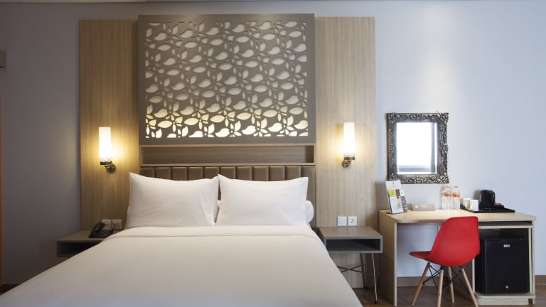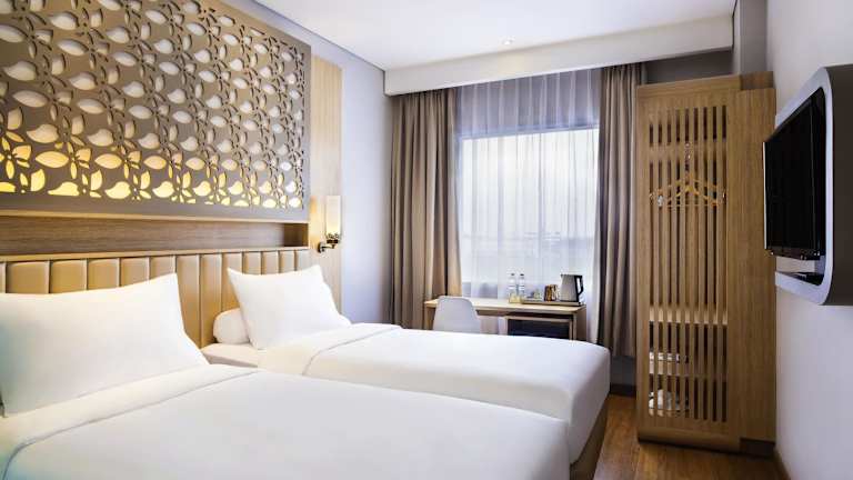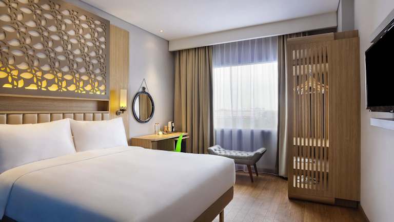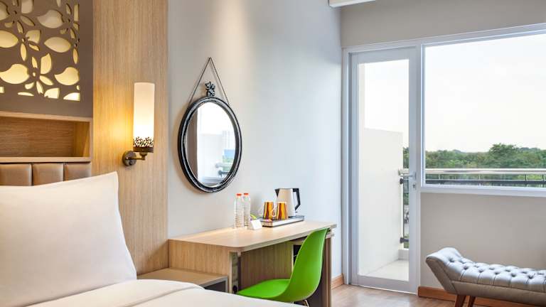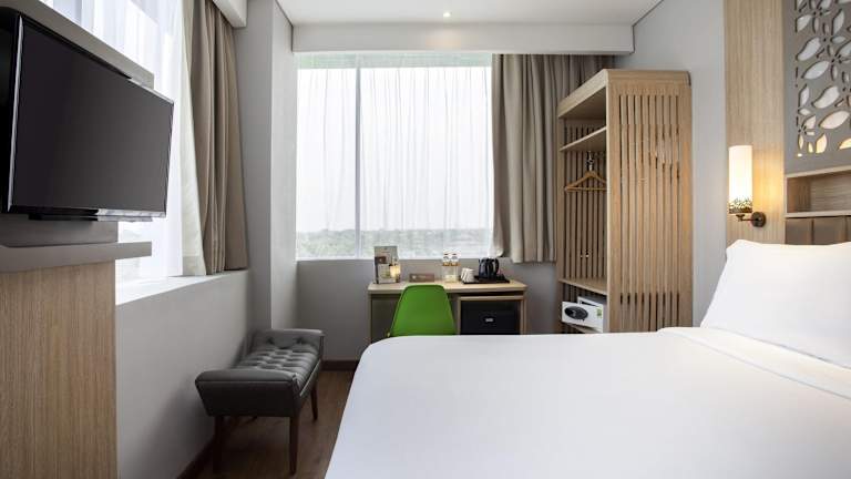 Die Zimmer im ibis Styles Cikarang sind komfortabel und bieten eine angenehme Atmosphäre für einen erholsamen Aufenthalt. Jedes Zimmer verfügt über ein Doppelbett, eine Klimaanlage und einen Balkon oder eine Terrasse. Zur Ausstattung gehören auch eine Minibar, ein Telefon, ein Fernseher und kostenfreies WLAN. Die Badezimmer sind mit Duschen ausgestattet und es stehen auch rollstuhlgerechte Zimmer zur Verfügung.