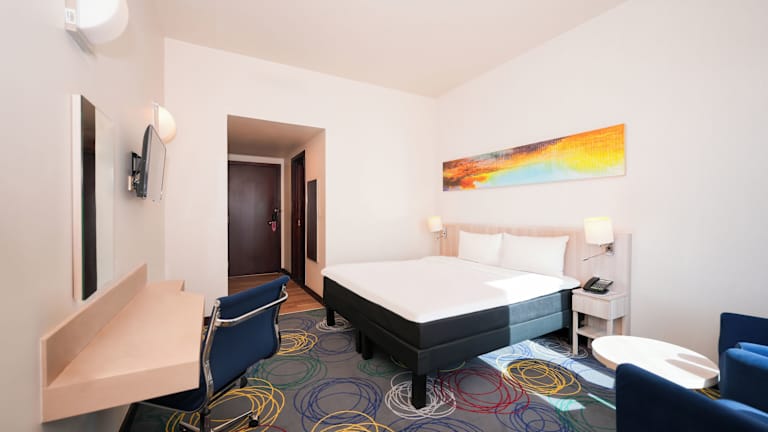 Das Hotel verfügt über 251 Zimmer auf 8 Etagen. Die Zimmer sind modern und komfortabel eingerichtet und bieten Annehmlichkeiten wie Klimaanlage, Heizung, Safe, Minibar, Schreibtisch, Kühlschrank, Tee-/Kaffeemaschine, Telefon, Flachbildfernseher und kostenfreies WLAN. Im Badezimmer finden Sie eine Dusche, eine Badewanne und einen Haartrockner.