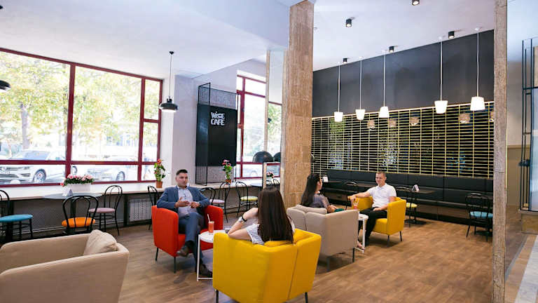 Im Erdgeschoss des Hotelkomplexes finden Sie eine Auswahl an Annehmlichkeiten. Es gibt 4 Banken, die Ihnen finanzielle Dienstleistungen bieten, sowie ein Restaurant, in dem Sie köstliche Speisen genießen können. Im Sommer können Sie sich in der offenen Lounge oder auf der Terrasse des Restaurants entspannen und die Atmosphäre der Stadt genießen.